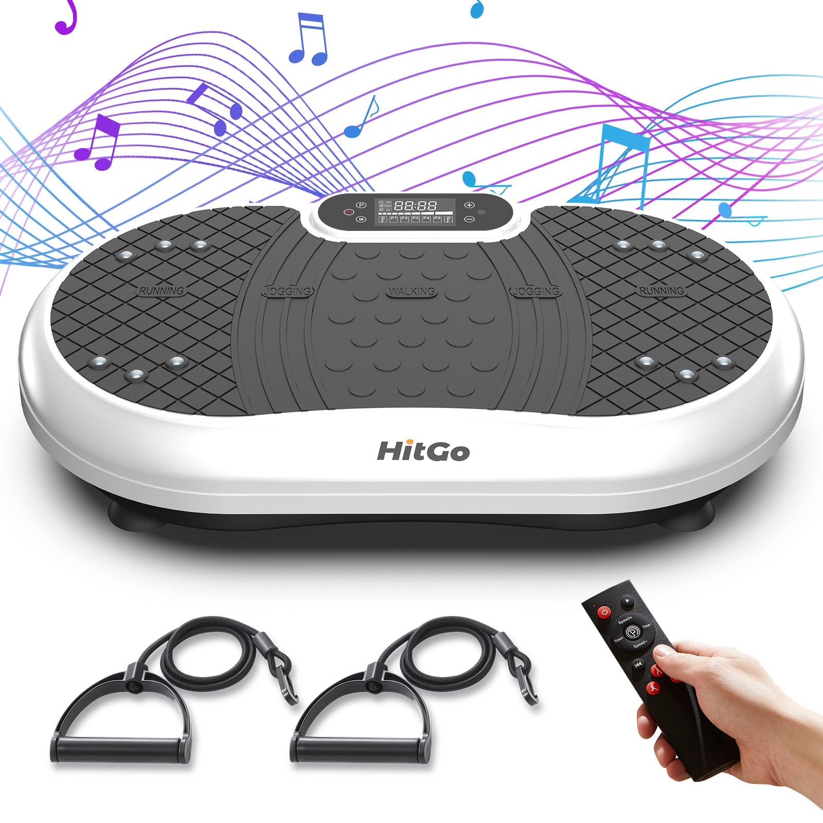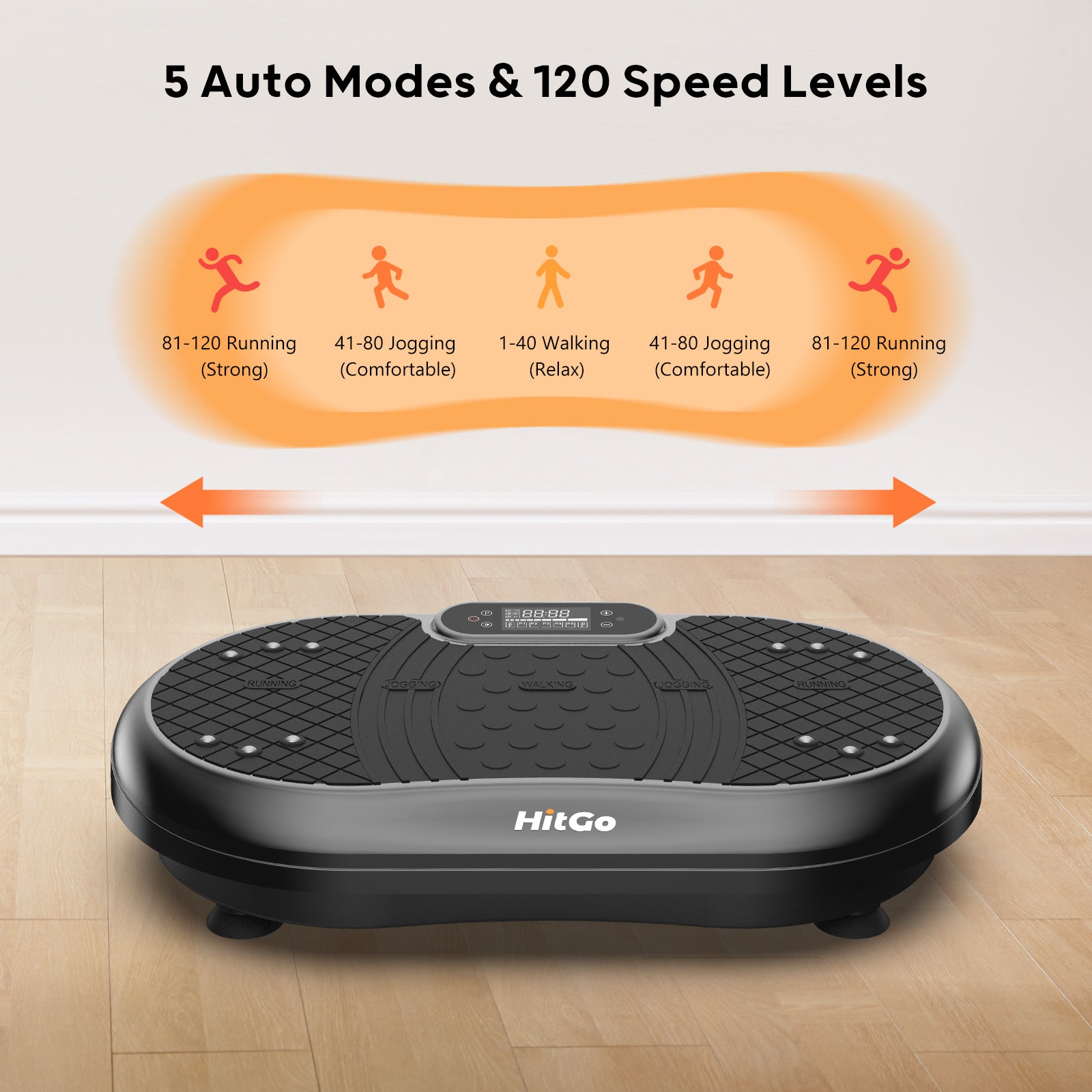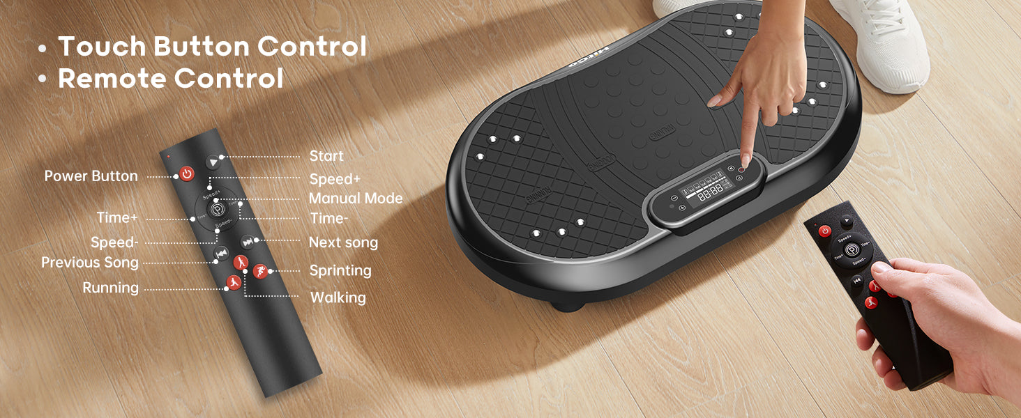 It has several options of vibration, low speeds to get acclimated and higher speeds for the more accomplished. Very sturdy and looks good in any room. A terrific exercise product. I am very glad I purchased this vibration machine. The remote works excellent and very handy to use.